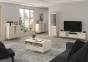 Série Tomila nabízí noční, TV i konferenční stolky, vitríny a komody v široké škále tvarů, barev a typů noh.