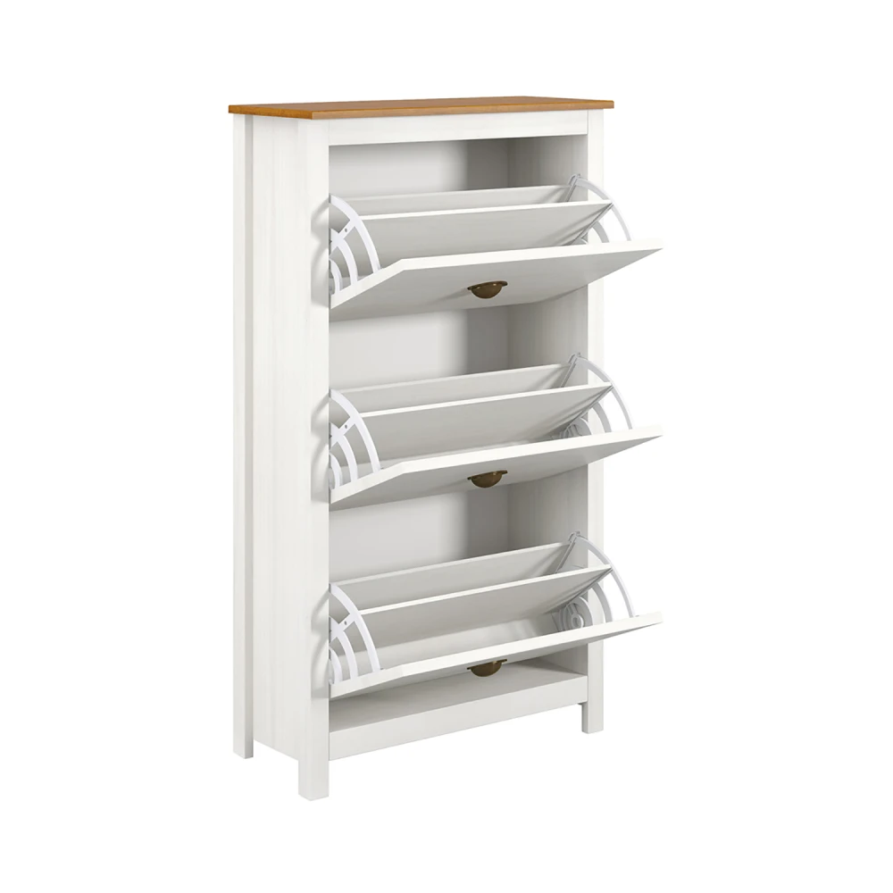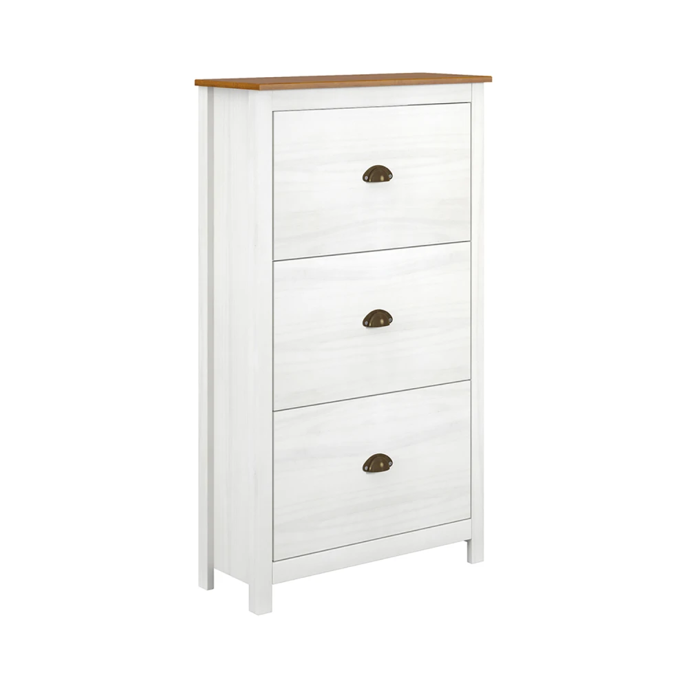 materiál masiv borovice, barevné provedení bílý / hnědý lak tři dvouřadé výklopy s kovovými úchytkami