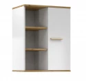 Závěsná skříňka Roky 3 je vyrobena z lamina v krásném dekoru bílá a dub artisan. Lamino tloušťky 18 mm je odolné a je zakončeno lištou ABS. Jistě oceníte i snadnou údržbu. Skříňka má nastavitelné panty a je velmi praktická. Kombinace dvířek a polic pojme vše potřebné. Rukojeť v dekóru dřeva je vyrobena z plastu. Je dodávána v demontu. Součástí balení je montážní návod včetně všech spojovacích prvků.