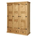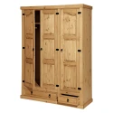 materiál masiv borovice voskovaná v medovém odstínu prostor dělený v poměru 2:1 širší část šatní tyč a police, užší část 3 police ve spodní části 1 velká a 1 malá zásuvka, kovové ozdobné úchytky doporučený nástavec CORONA 16952 součást sestavy Corona