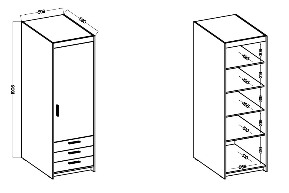 Šatní skříň Enja je vyrobena z kvalitního lamina tl.15 mm, které je odolné a snadné na údržbu. Vnitřní uspořádání skříně je praktické a poskytuje dostatek úložného prostoru. Své uplatnění najde v ložnici, předsíni i v dětském pokoji. Ke skříni lze dokoupit nádstavec. Skříň je dodávaná v demontu a nabízíme ji ve několika barevných provedeních. Součástí balení je montážní plánek včetně všech potřebných spojovacích materiálů.