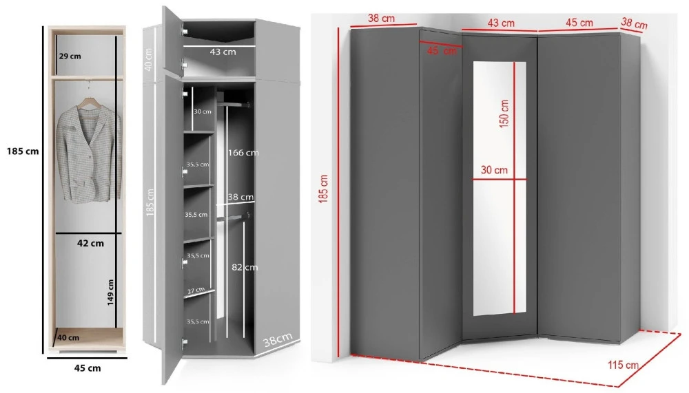 Dopřejte si šatní skříň, která spojuje funkčnost, styl a kvalitu zpracování. Rohová skříň Emi 40 se stane praktickým i estetickým doplňkem vašeho domova.