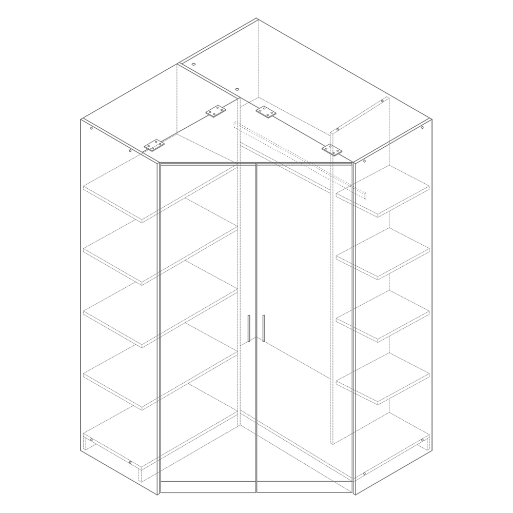 barevné provedení dub Sonoma rohová šatní skříň, 9 polic a šatní tyč možno doplnit o nástavec 51555