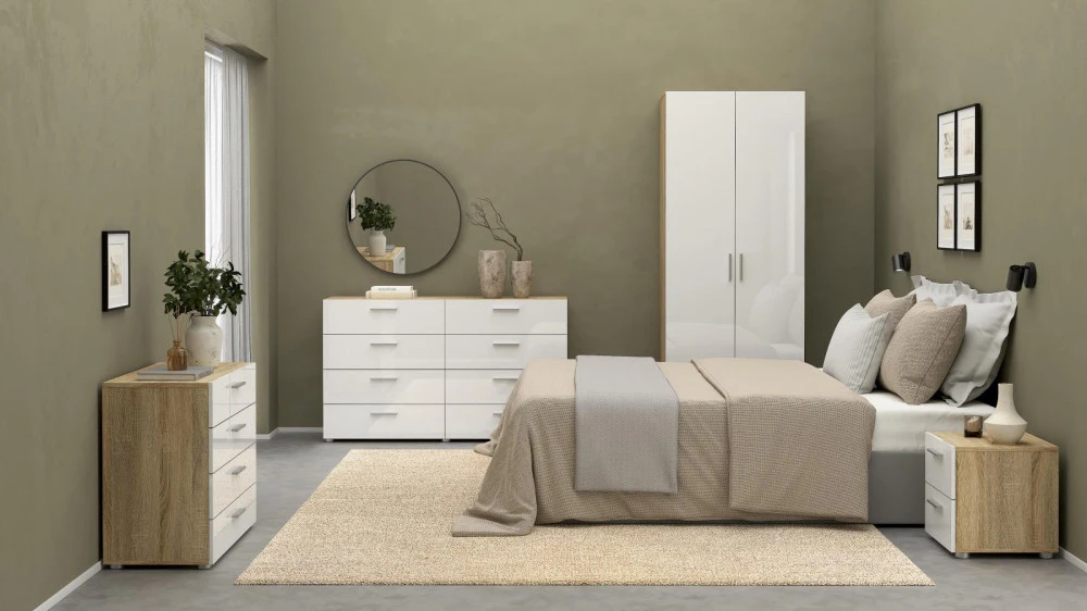 Nadčasová série Pedro v minimalistickém designu nabízí stylový a funkční nábytek, který se bez problému hodí do jakéhokoli interiéru. Je vyroben z kvalitního a snadno udržovatelného lamina, hrany jsou zakončené vysoce odolným ABS materiálem