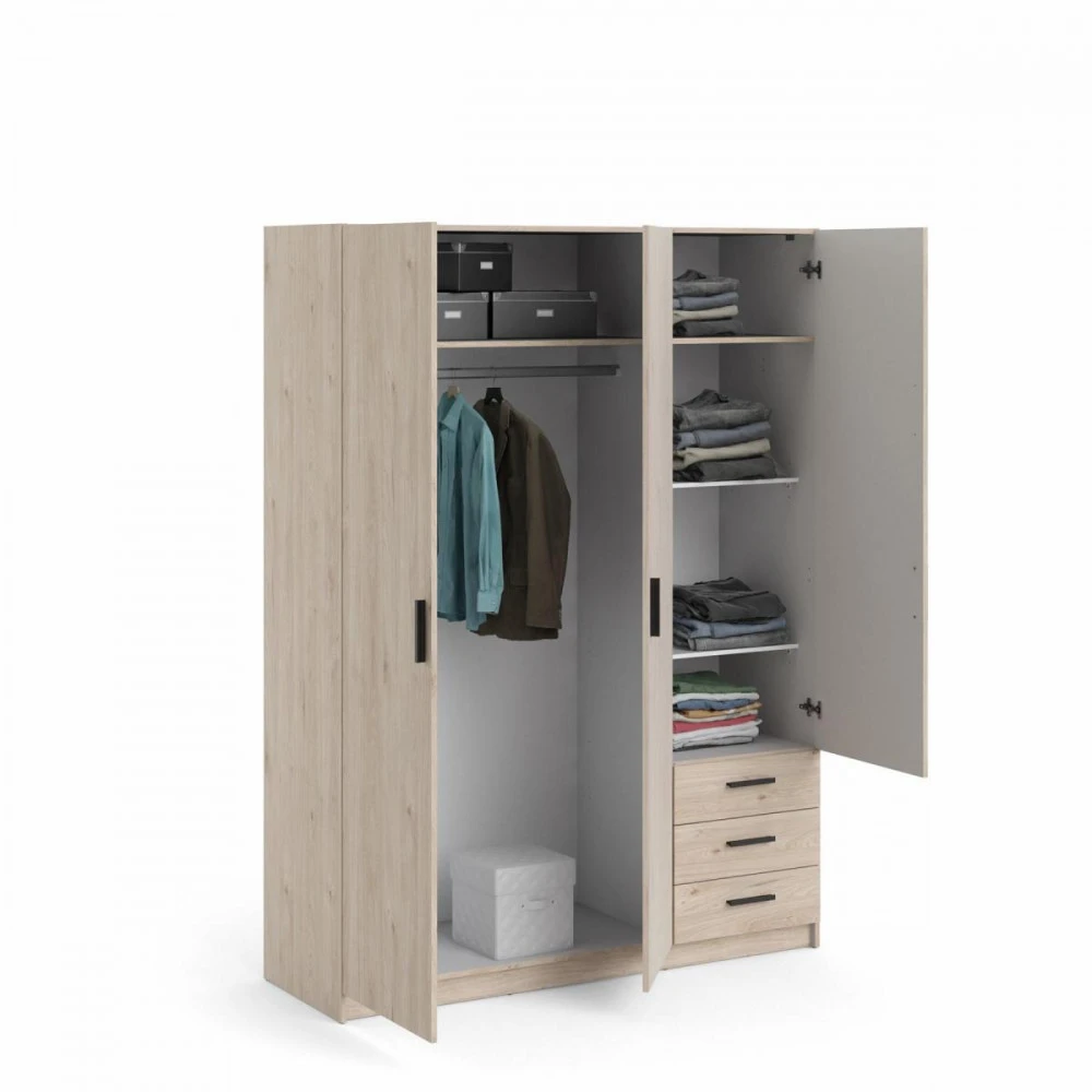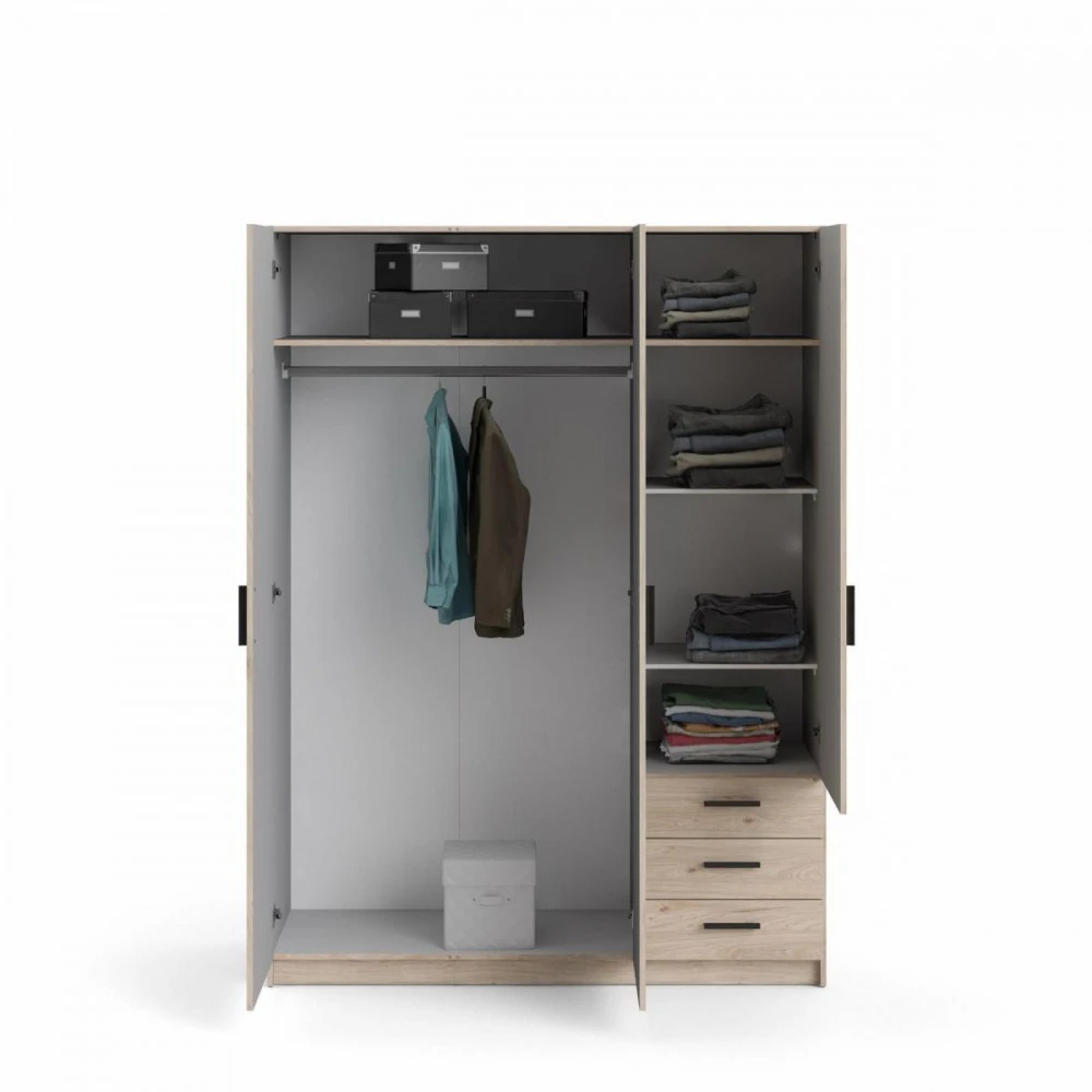 Šatní skříň Spike je vyrobená z lamina, má kvalitní zpracování, je vyráběná v souladu s ohledy na životní prostředí a navíc je praktická a funkční. Nabízí dostatek úložného prostoru a univerzální využití. Výborně se hodí např. do ložnice, do dětského i studentského pokoje, ale i do pracovny či předsíně. Skříň je vyrobená v jednoduchém a nadčasovém skandinávském stylu. Má rovné a čisté linie, které vytvoří útulný, pohodový a příjemný interiér. Skříň je také vybavena praktickými zásuvkami, které můžete využít např.na spodní prádlo. Je dodávaná v demontu. Součástí balení je montážní návod včetně všech spojovacích prvků. Vyobrazené doplňky a dekorace nejsou v ceně.