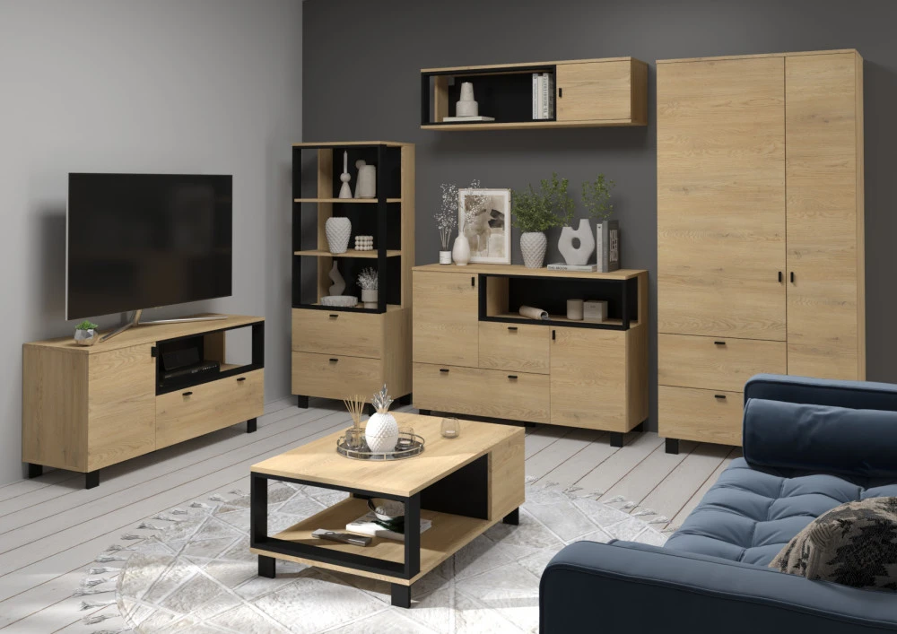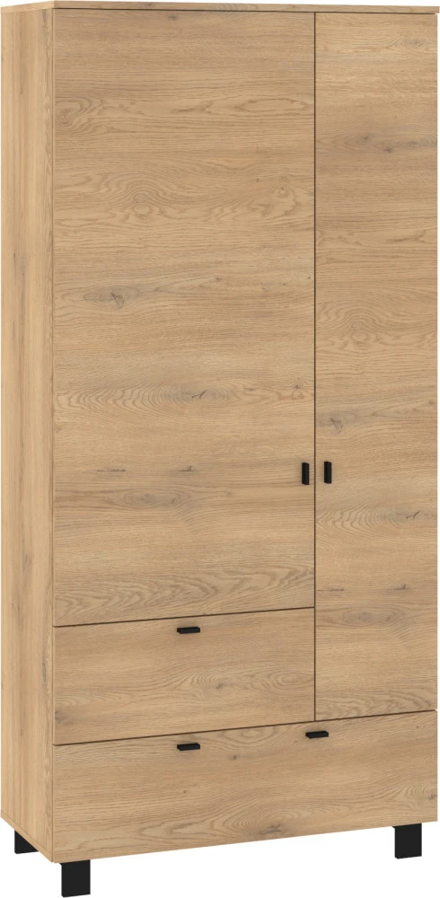 Šatní skříň Vegas 14 vás zaujme svým moderním designem a přírodním provedením v kombinaci s černými či bílými detaily. Je vyrobena z kvalitních lamino desek o síle 16 mm. Desky mají ABS hranění, které zvyšuje odolnost pro odštípnutí hran. Součástí zásuvek a dvířek jsou jednoduché černé kovové úchyty, zároveň mají zabudovaný systém tichého dovírání. Nábytek stojí na černých kovových nožkách o velikosti 8 cm, které provzdušní váš celkový prostor. Nabízíme vám několik barevných variant. Součástí šatní skříně jsou 2 dvířka, za kterými jsou vloženy 4 lakované police a šatní tyč. Pod dvířky jsou 2 zásuvky na kovových pojezdech.Doporučujeme si vybrat z dalších komodit systému Vegas, ze kterých si vytvoříte svůj vysněný interiér. Nábytek dodáváme v demontu.