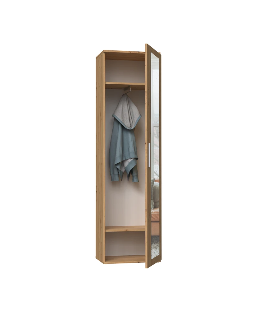 Zrcadlová šatní skříň Topaz v moderním stylu a trendy barvách splní očekávání všech, kteří ocení kombinaci jednoduchosti a elegance. Je vyrobena ze snadno udržovatelného lamina, hrany jsou zakončené vysoce odolným ABS materiálem.
