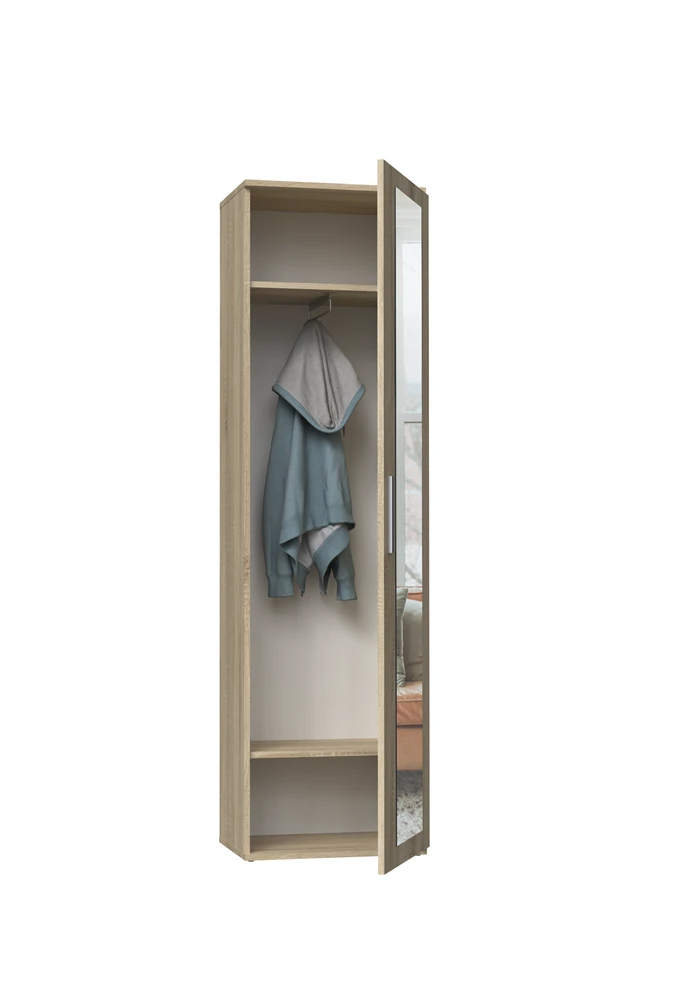 Zrcadlová šatní skříň Topaz v moderním stylu a trendy barvách splní očekávání všech, kteří ocení kombinaci jednoduchosti a elegance. Je vyrobena ze snadno udržovatelného lamina, hrany jsou zakončené vysoce odolným ABS materiálem.