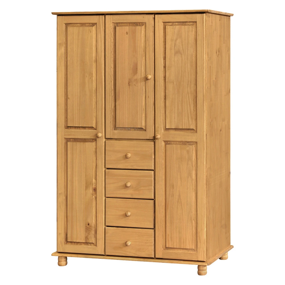 materiál masiv borovice, voskované provedení čtyři zásuvky s kovovými pojezdy v levé části dvě šatní tyče, ve střední části 1 police a v pravé části 3 police doporučený nástavec 8864V