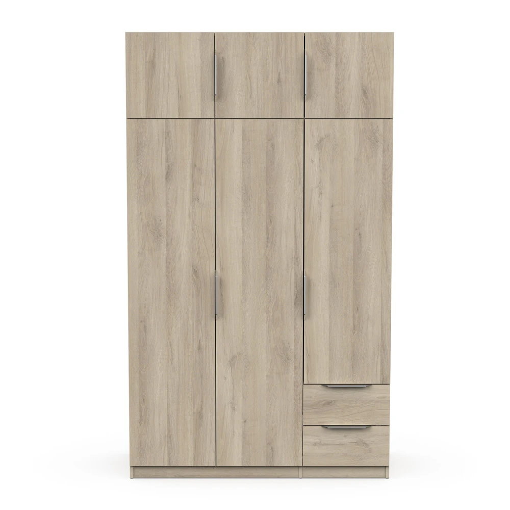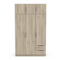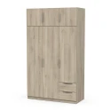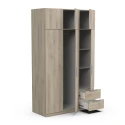 barevné provedení dub Kronberg prostor dělený v poměru 2:1, v levé části šatní tyč v pravé části 2 police a 2 zásuvky s kovovými pojezdy v horní části dva úložné prostory maximální nosnosti uvedeny v návodu k montáži