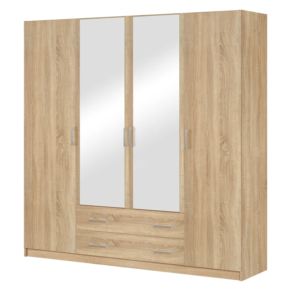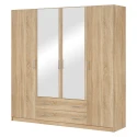 barevné provedení dub Sonoma 2 zrcadlové a 2 plné dveře, prostor dělený v poměru 1:2:1 ve všech třech částech šatní tyč a police, ve střední části dole 2 zásuvky možno doplnit o nástavec 51545