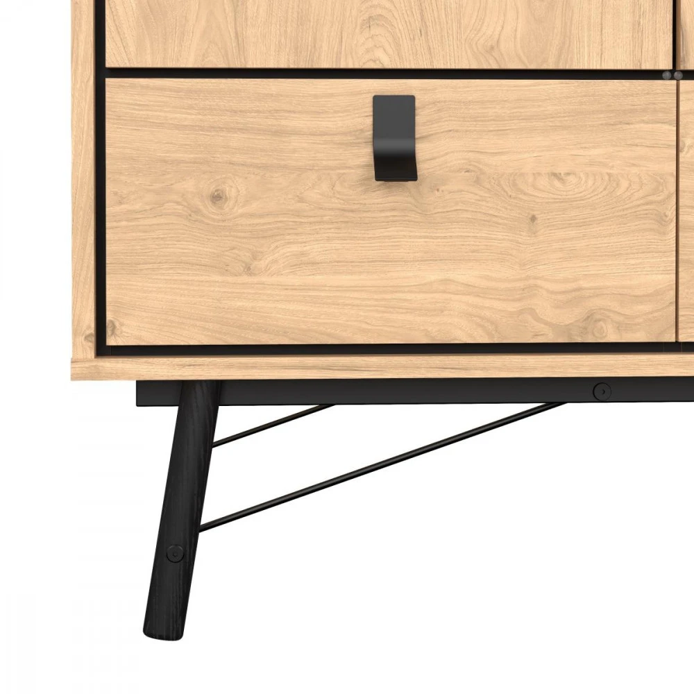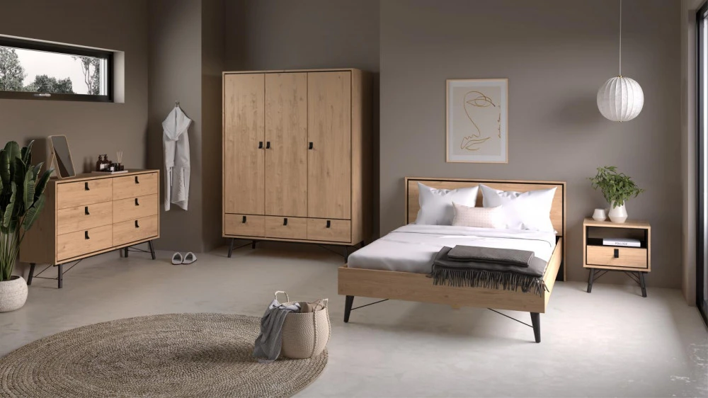 Kolekce Rain, inspirovaná nadčasovou dánskou designovou klasikou, kombinuje retro a moderní styl a nabízí široký výběr elegantního nábytku. Vyznačuje se šikmými nohami z mořeného masivního buku v kombinaci s kovovými tyčemi, úchytkami z vysoce kvalitního hliníku s matným černým povrchem a „plovoucími čely“. Iluze plovoucích čel je dosažena kombinací 12 mm vnitřní skříňky s 18 mm vnější skříňkou. Tento jedinečný design dodává celkové estetice nádech lehkosti.
