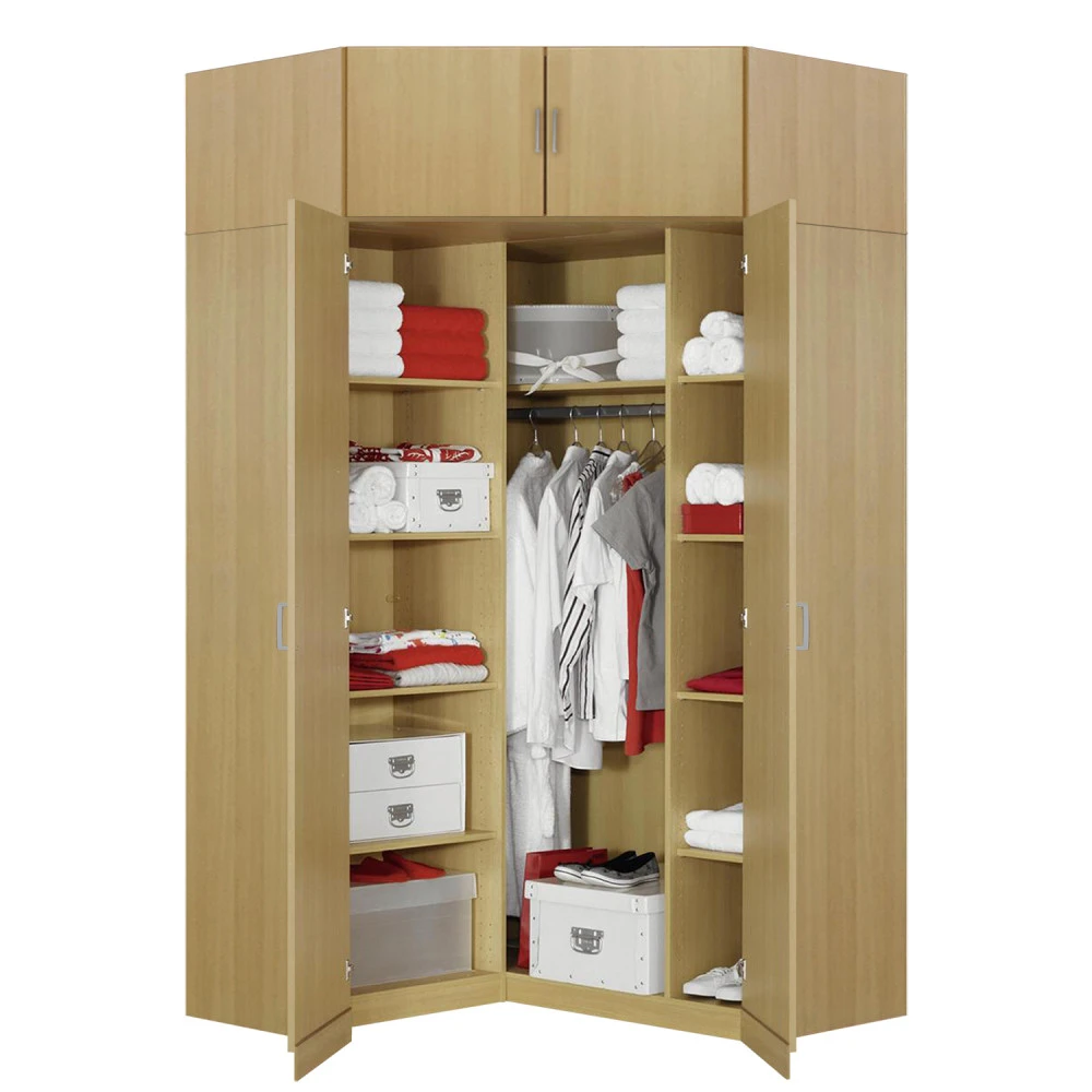barevné provedení buk rohová šatní skříň, 9 polic a šatní tyč možno doplnit o nástavec 11555