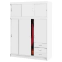 barevné provedení bílá posuvné dveře, cena včetně nástavce, prostor dělený v poměru 2:1 širší část šatní tyč, užší část 2 variabilní police, 3 zásuvky s kovovými pojezdy barevné varianty: 3000A buk, 53000 dub Sonoma