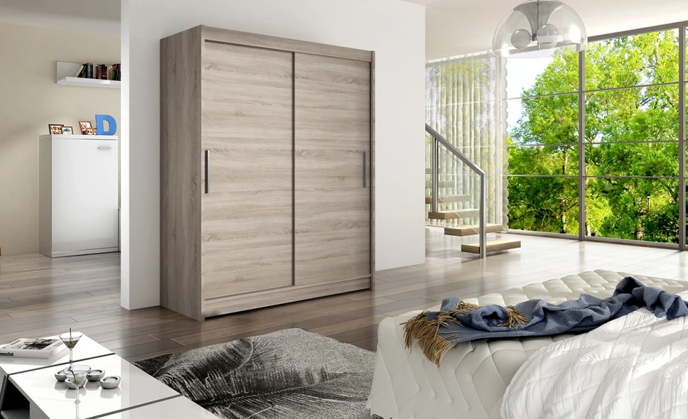 Jednoduchý a elegantní design skříně osloví i náročné zákazníky. Je vyrobena z lamina o síle 16 mm a hrany jsou ukončeny ABS lištou. Vodící lišty jsou vyrobeny z odolného hliníku a splňují požadavky pro každodenní užívání. Díky svému uspořádání poskytuje dostatek úložného prostoru. Skvěle se hodí do ložnice, předsíně, dětského, nebo studentského pokoje. Skříň je dodávána v demontu a součástí je montážní plánek včetně všech potřebných spojovacích materiálů. Vyobrazené dekorace nejsou v ceně.