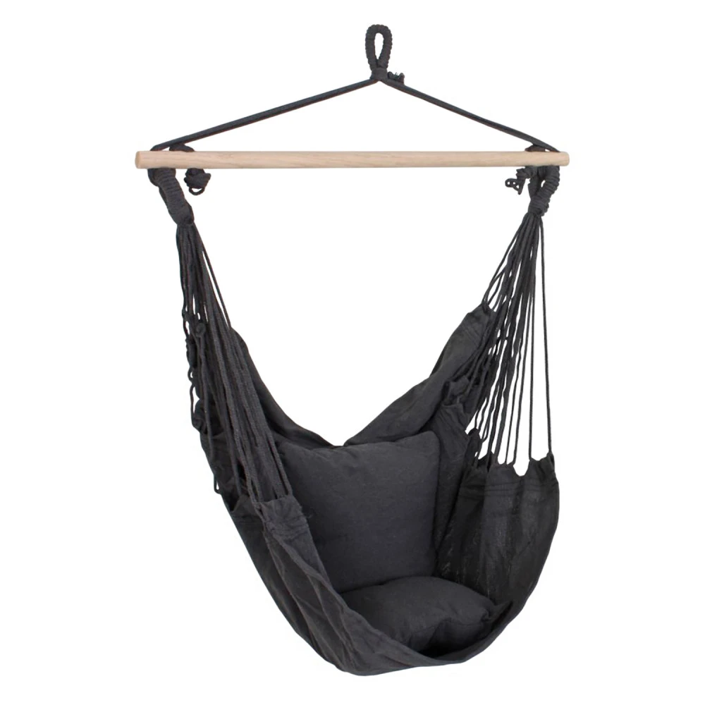 materiál 65 % bavlna, 35 % polyester, barevné provedení antracitová rozměr polštářů (š/h) 35 × 35 cm rozpěrka z tvrdého masivního dřeva o průměru 3,2 cm a délce 90 cm doporučená nosnost do 120 kg