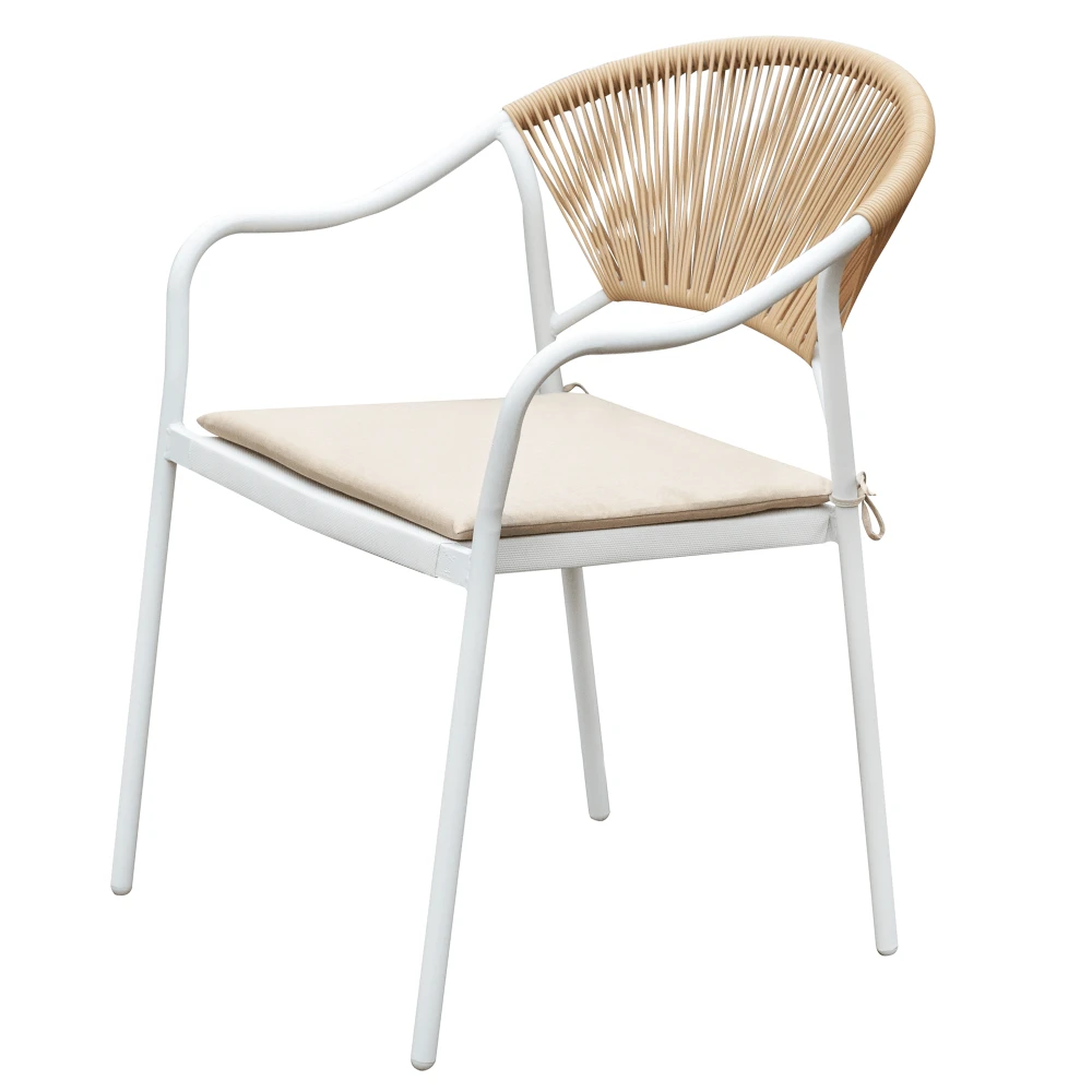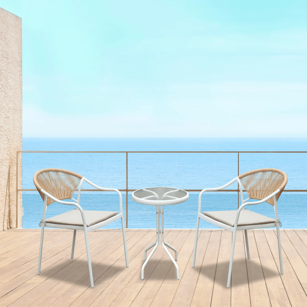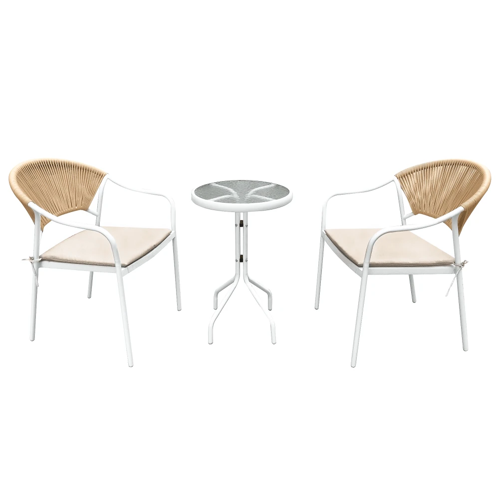 Zahradní 3-dílný ratanový set, bílá/béžová, ELIOR